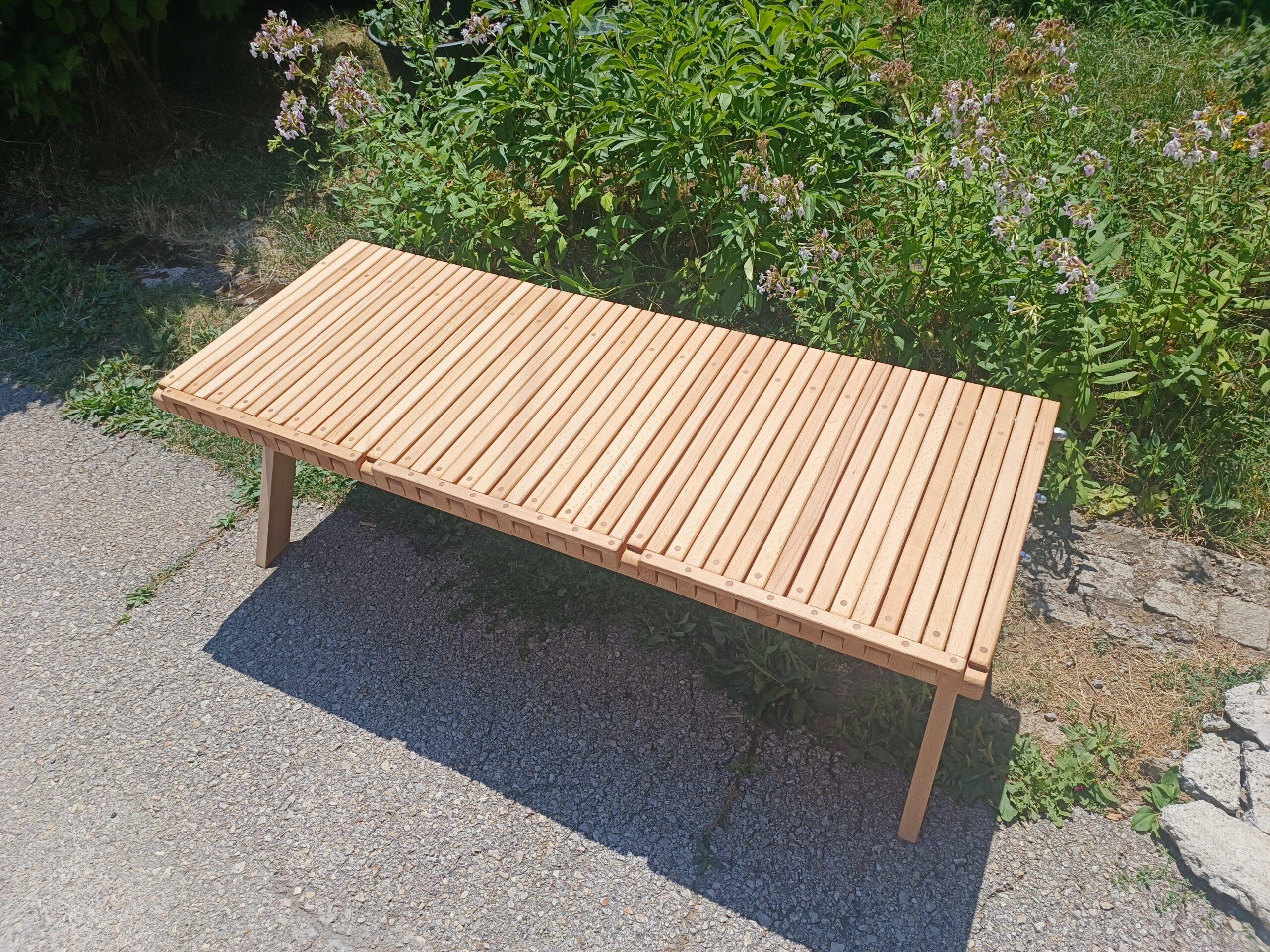 Neobična ležaljka izrađena od bukovog drveta. Najvažnija karakteristika ležaljke je mogućnost sklapanja i lagerovanja tokom zimskog perioda.