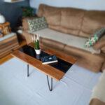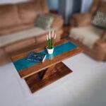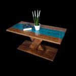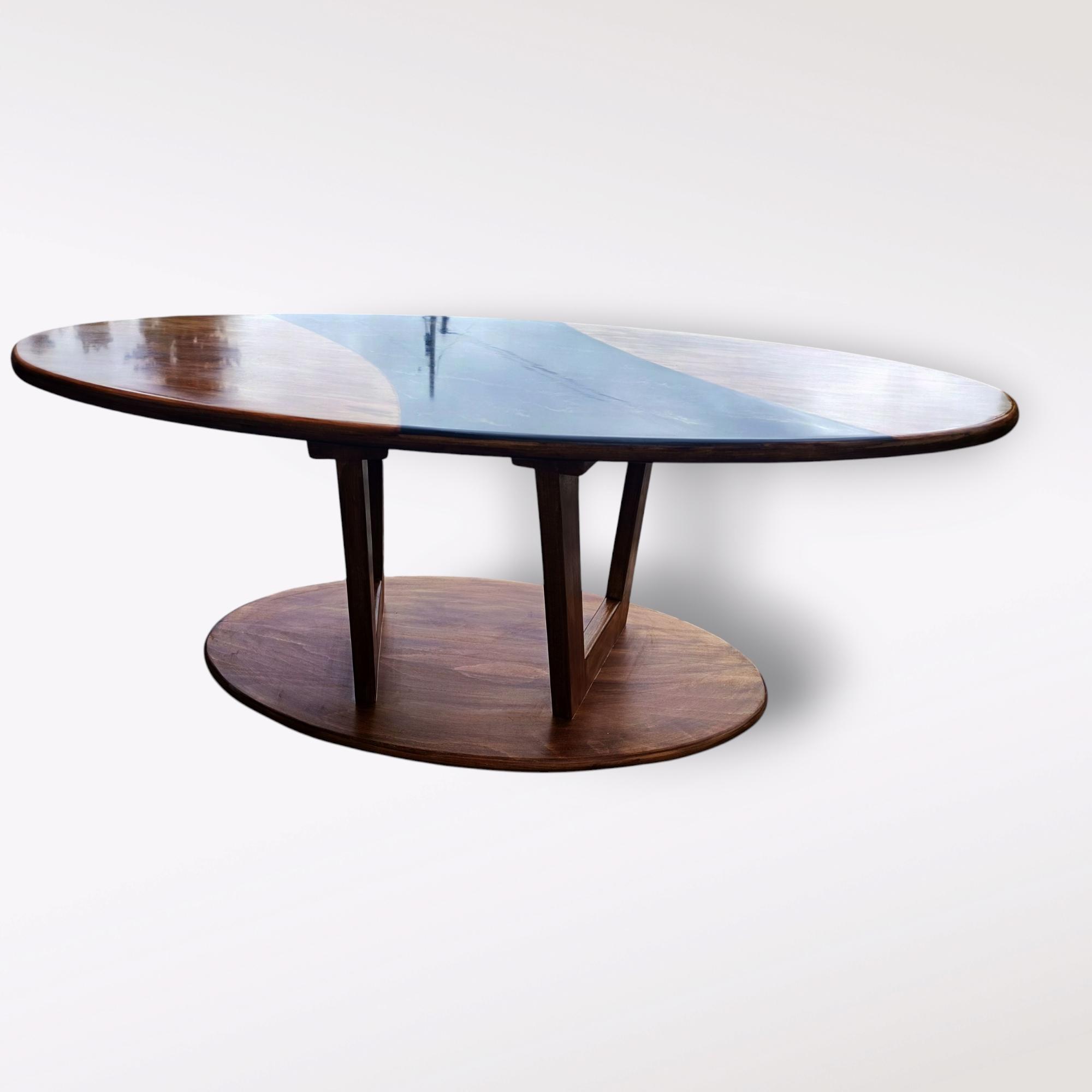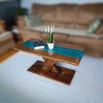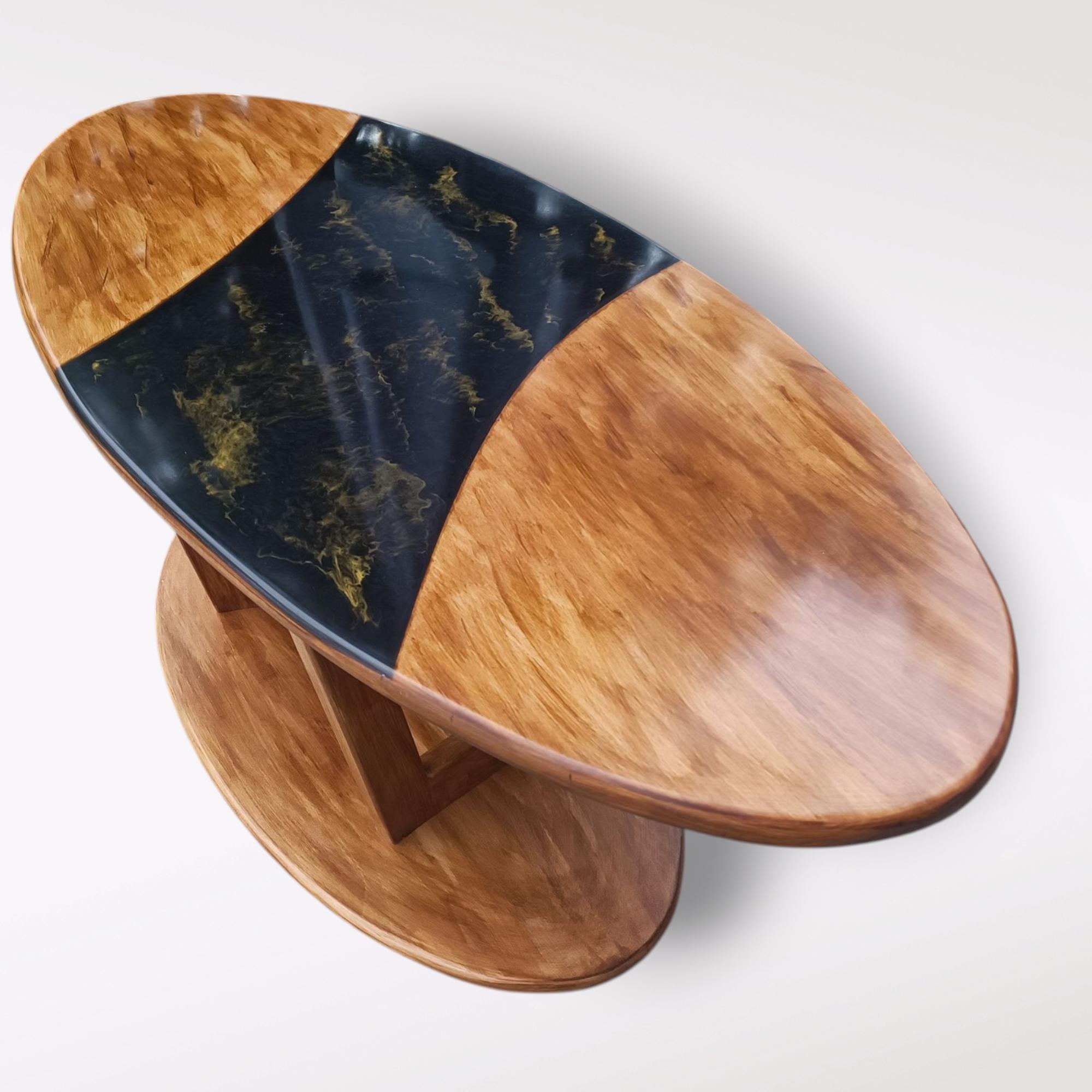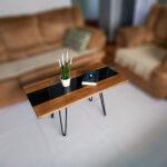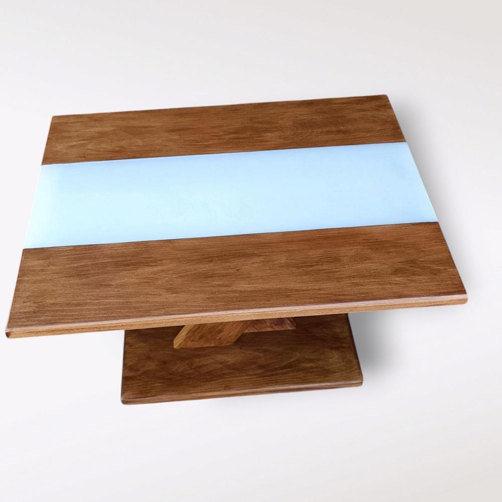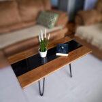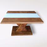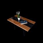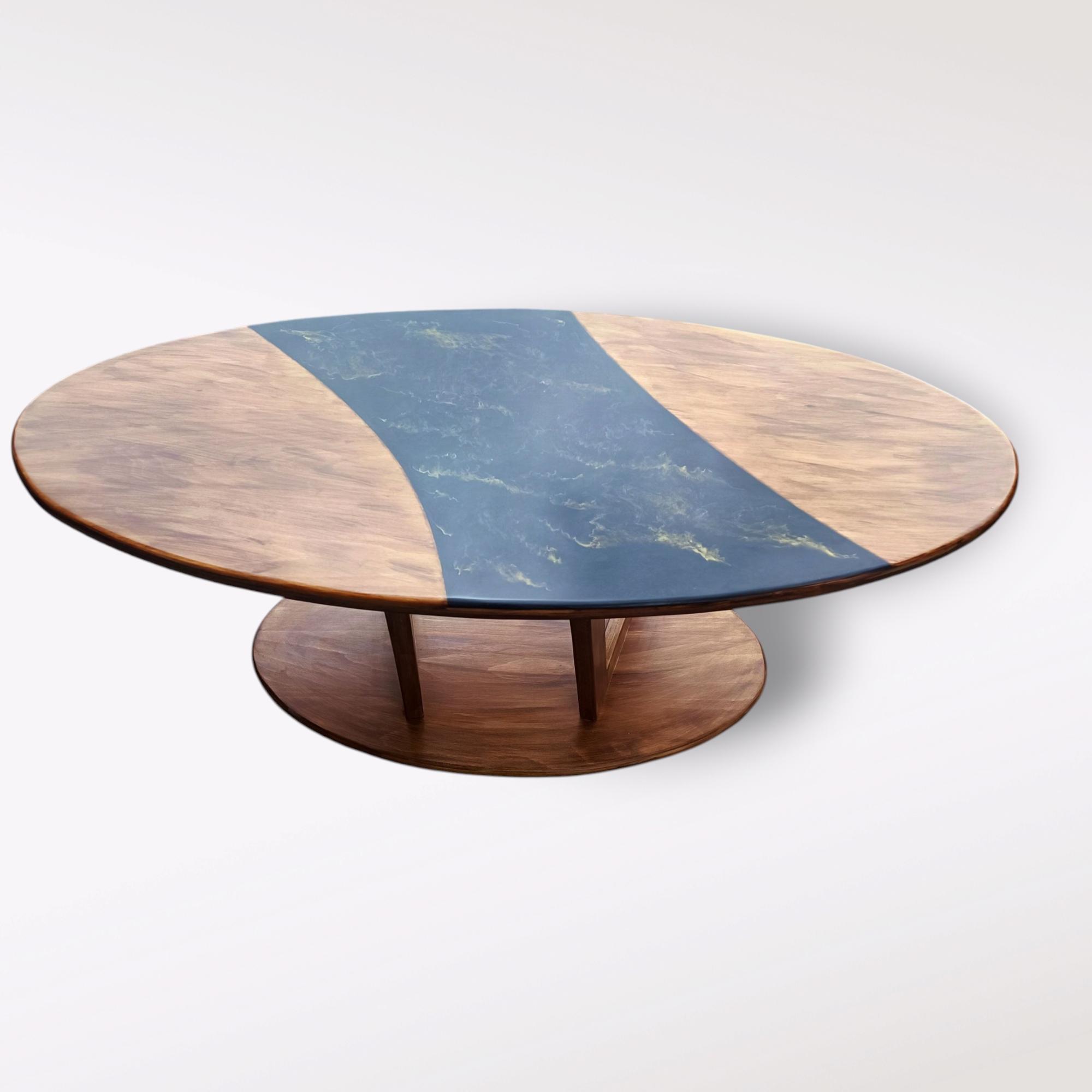 Sto je napravljen od hrastovog drveta i crne smole sa plavim detaljima. Vrlo elegantan i moderan dizajn.